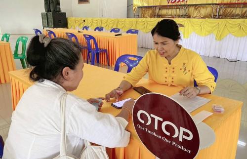 ในการนี้ นางลติยา สุทธิผาน พัฒนาการอำเภอนาทม พร้อมด้วย เจ้าหน้าที่พัฒนาชุมชนอำเภอนาทม ร่วมลงพื้นที่ประจำจุดให้คำแนะนำแก่กลุ่มผู้ผลิต ผู้ประกอบการ OTOP และประชาชนทั่วไปในการลงทะเบียนเข้าร่วมกิจกรรมดังกล่าว เพื่อให้สามารถเข้าถึงสิทธิประโยชน์ของโครงการได้อย่างทั่วถึง